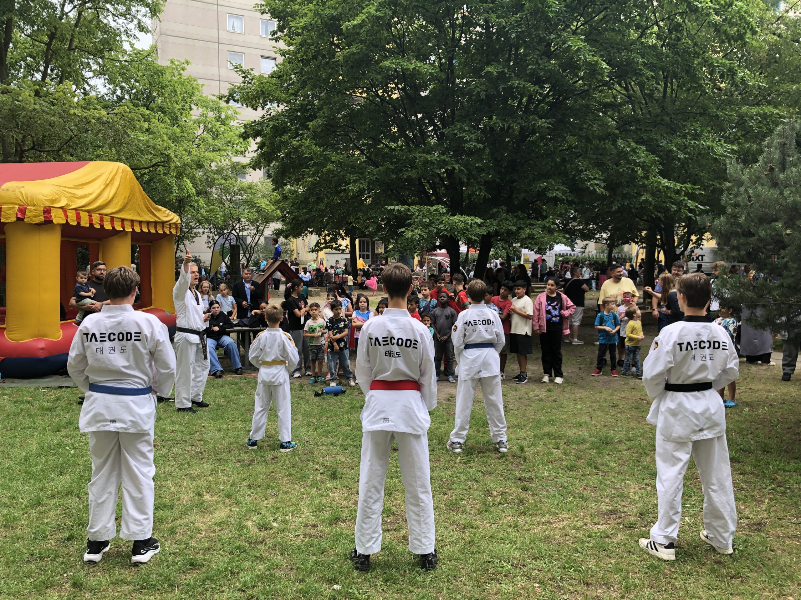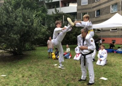 Am 24.07. haben wir bei dem Sommerfest der gemeinnützigen Gesellschaft für innovative Jugendhilfe und soziale Dienste casablanca die Besucher für unseren Sport im Rahmen einer kleinen Vorführung und Mitmach-Aktion für unseren Sport begeistert. Insbesondere die Bruchtests haben die Zuschauenden gefesselt.